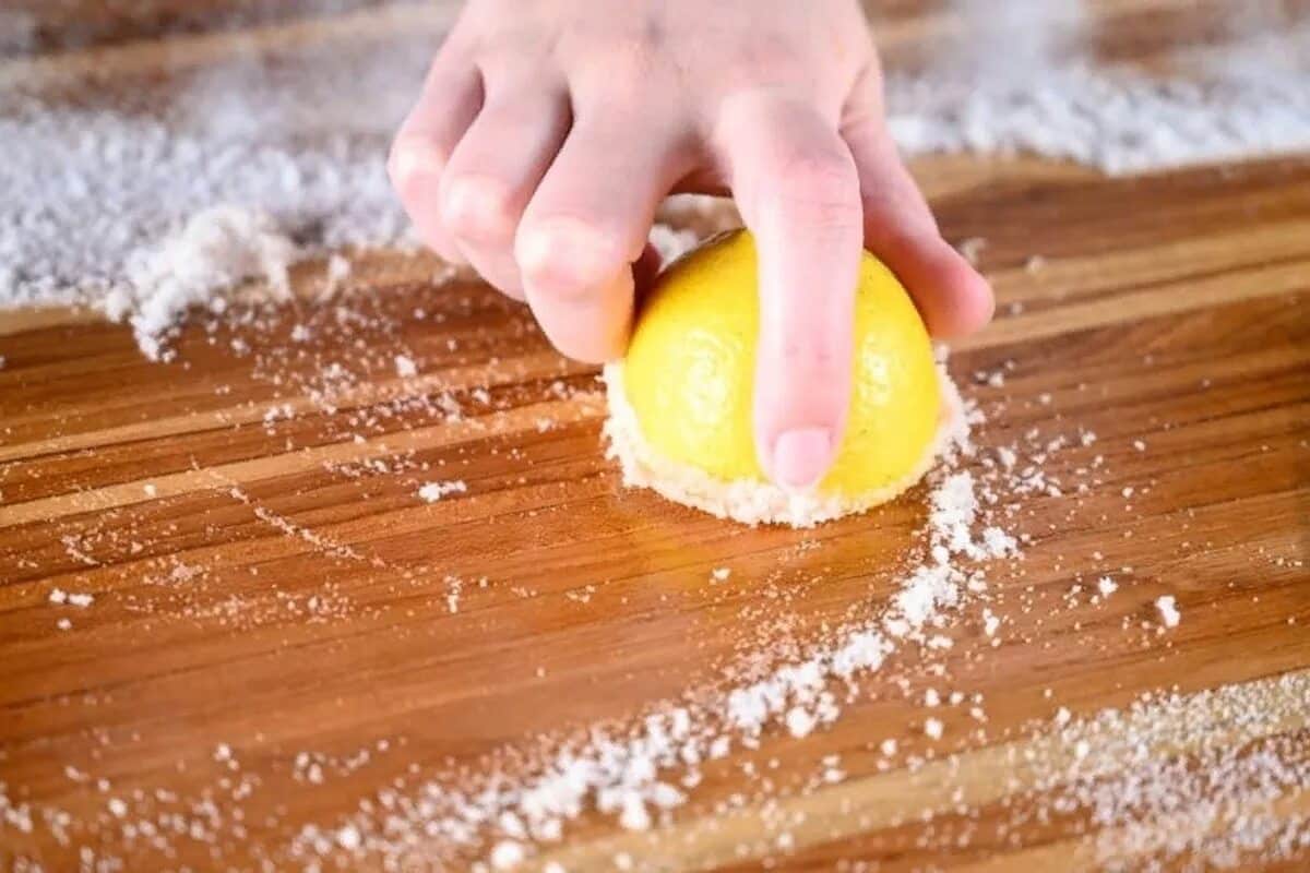 • Drücken Sie etwas Zitronensaft aus, um eine Paste zu bilden, oder reiben Sie das Brett mit einer halben Zitrone ein.